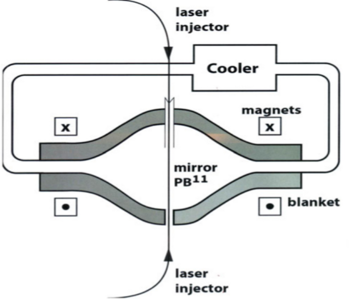 A proton beam is produced at a velocity of the order of 109cm/s to interact with an uncharged hydrogen-boron medium such as H3B. The generated charged particles are confined by electromagnetic fields. This is the basic concept of the new non-thermal fusion reactor. An external electric field is applied to prevent the energy loss of the proton particles by friction, due to their interaction with the electrons of the medium, to keep the proton-boron fusion at a maximum cross-section. Alp